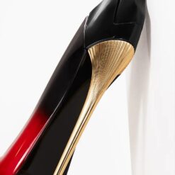 Chai nước hoa vẫn giữ thiết kế hình đôi giày cao gót mang tính biểu tượng của thương hiệu, nhưng được khoác lên sắc đỏ ruby lộng lẫy, phản chiếu ánh sáng mạnh mẽ. Phần thân chai phủ hiệu ứng ánh kim rực rỡ kết hợp với gót vàng sang trọng, vừa quyến rũ vừa quyền lực, tượng trưng cho vẻ đẹp nữ tính đầy nội lực.