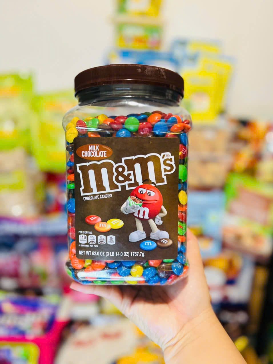 M&M’s Chocolate Candies là dòng kẹo socola biểu tượng của Mỹ, nổi tiếng với lớp vỏ màu sắc vui mắt và hương vị ổn định qua nhiều năm. Trong đó, Peanut M&M’s và Milk Chocolate M&M’s là hai phiên bản bán chạy nhất, thường được đóng hũ lớn 62oz (1.75kg) để dùng lâu dài hoặc chia sẻ cho nhiều người.
