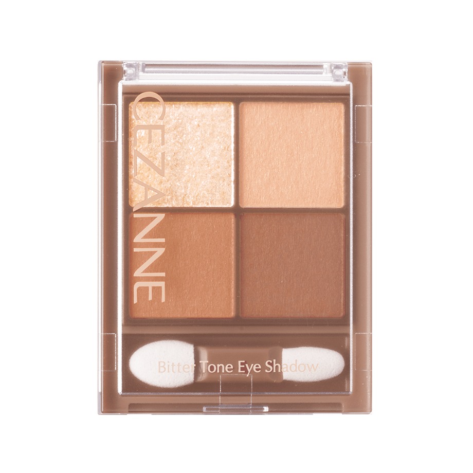 Phấn mắt CEZANNE Bitter Tone Eye Shadow Nhật Bản là bảng mắt 4 ô nổi bật với concept màu lì trong trẻo kết hợp nhũ sáng cao, giúp tạo chiều sâu cho mắt nhưng vẫn giữ tổng thể nhẹ nhàng, thanh lịch và dễ dùng hằng ngày. Theo thông tin từ CEZANNE, dòng này có 3 màu phổ biến là 01 Orange Ganache, 02 Dry Rose và 03 Biscuit Brown.
