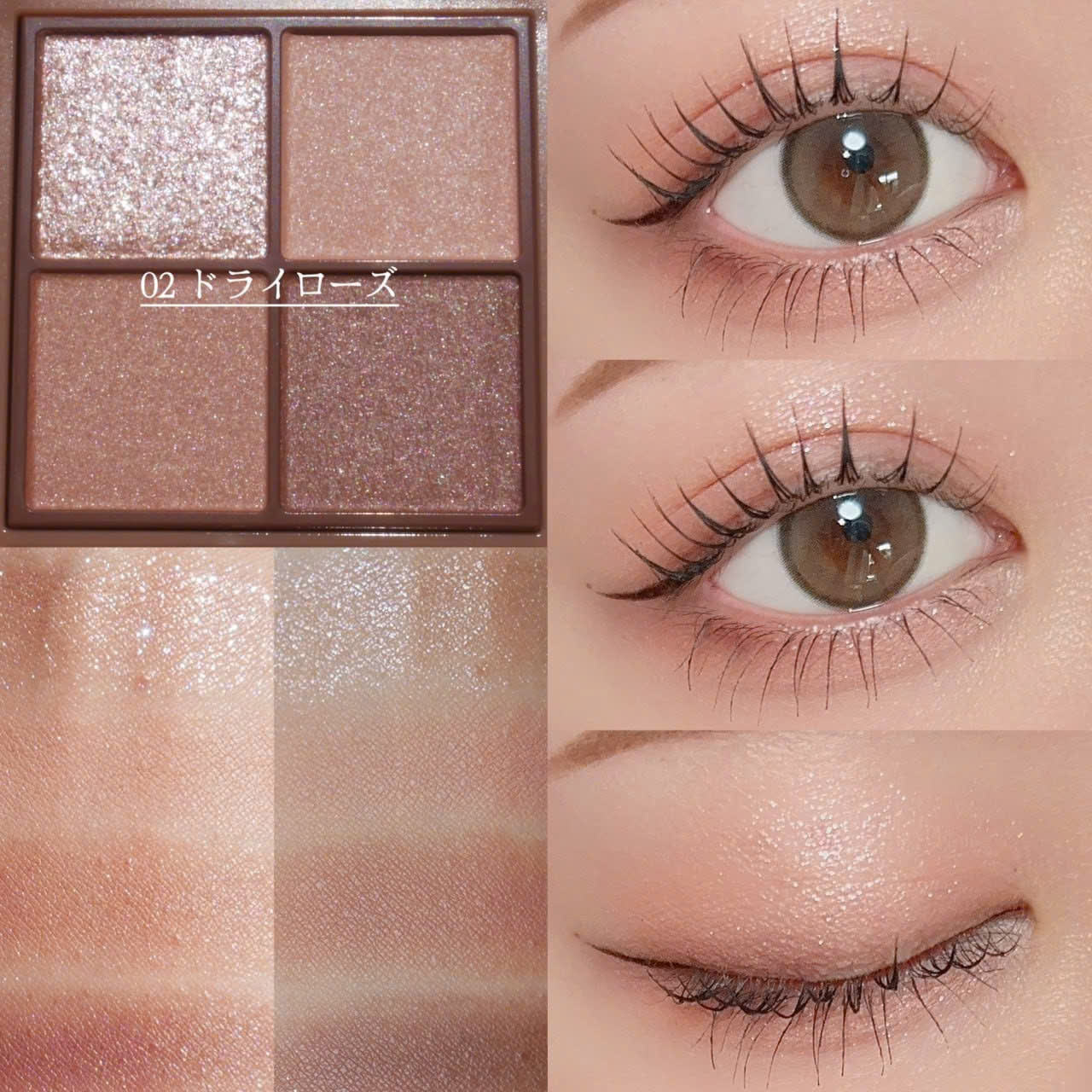 02 Dry Rose là tông hồng nâu trầm, vừa có độ ngọt vừa có chút khói nhẹ, phù hợp với người thích makeup nữ tính nhưng không quá bánh bèo. Theo hãng, đây là màu có sự cân bằng giữa sắc hồng và độ trầm, tạo hiệu ứng mắt mềm mại nhưng vẫn cuốn hút.