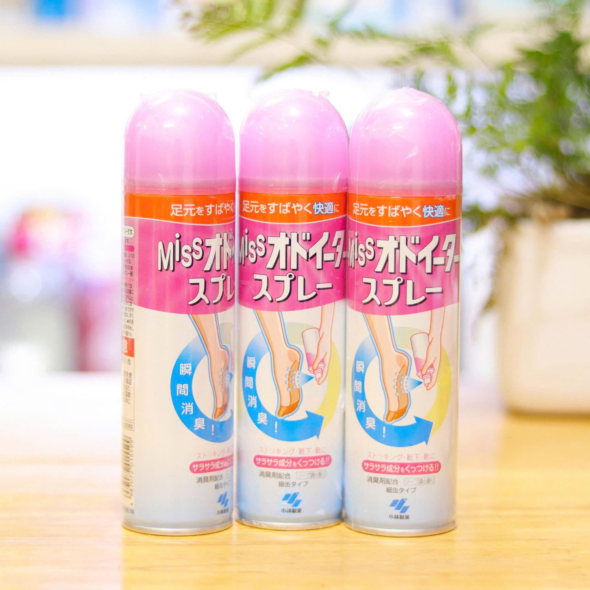 Nếu đi giày nhiều, mang tất cả ngày hoặc hay bí chân trong thời tiết nóng ẩm, mùi chân rất dễ bám lại ở chân, tất và cả bên trong giày. Kobayashi Miss Odoiter Spray là dòng xịt khử mùi chân của Nhật khá quen thuộc, dùng để xịt vào chân, tất, vớ hoặc giày giúp chân khô thoáng và dễ chịu hơn nhanh chóng. Theo trang sản phẩm của Kobayashi, sản phẩm có các thành phần khử mùi bám vào sợi vải, đồng thời có thành phần tạo cảm giác khô thoáng giúp bàn chân đỡ bí hơn khi mang giày lâu.